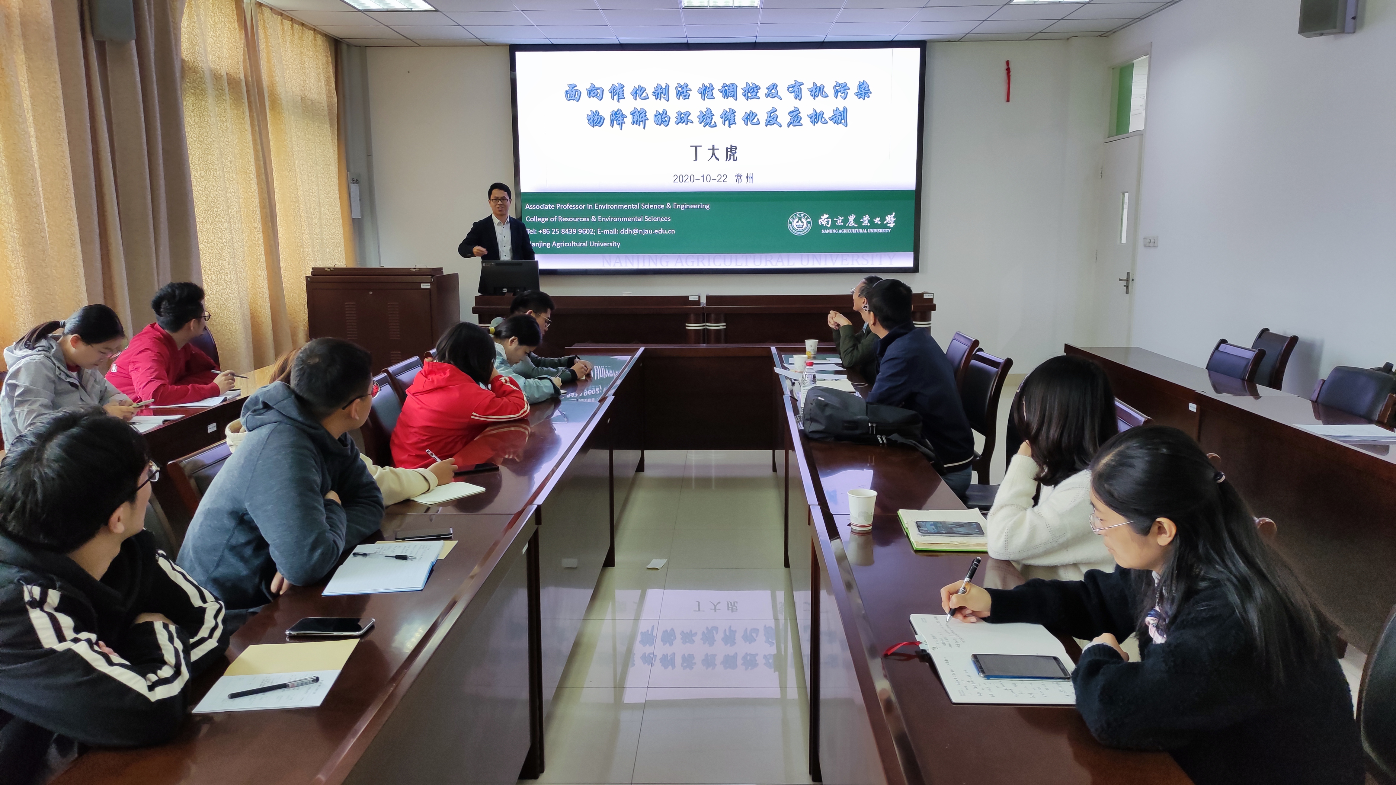 10月22日上午,南京农业大学钟山学者丁大虎博士来威尼斯官网交流,在科教城校区明行楼341会议室为威尼斯官网师生作了题为” 面向催化剂活性调控及有机污染物降解的环境催化反应机制”的学术报告,会议由环境学院副院长朱平华教授主持,市政工程系专业教师和部分研究生参加会议。