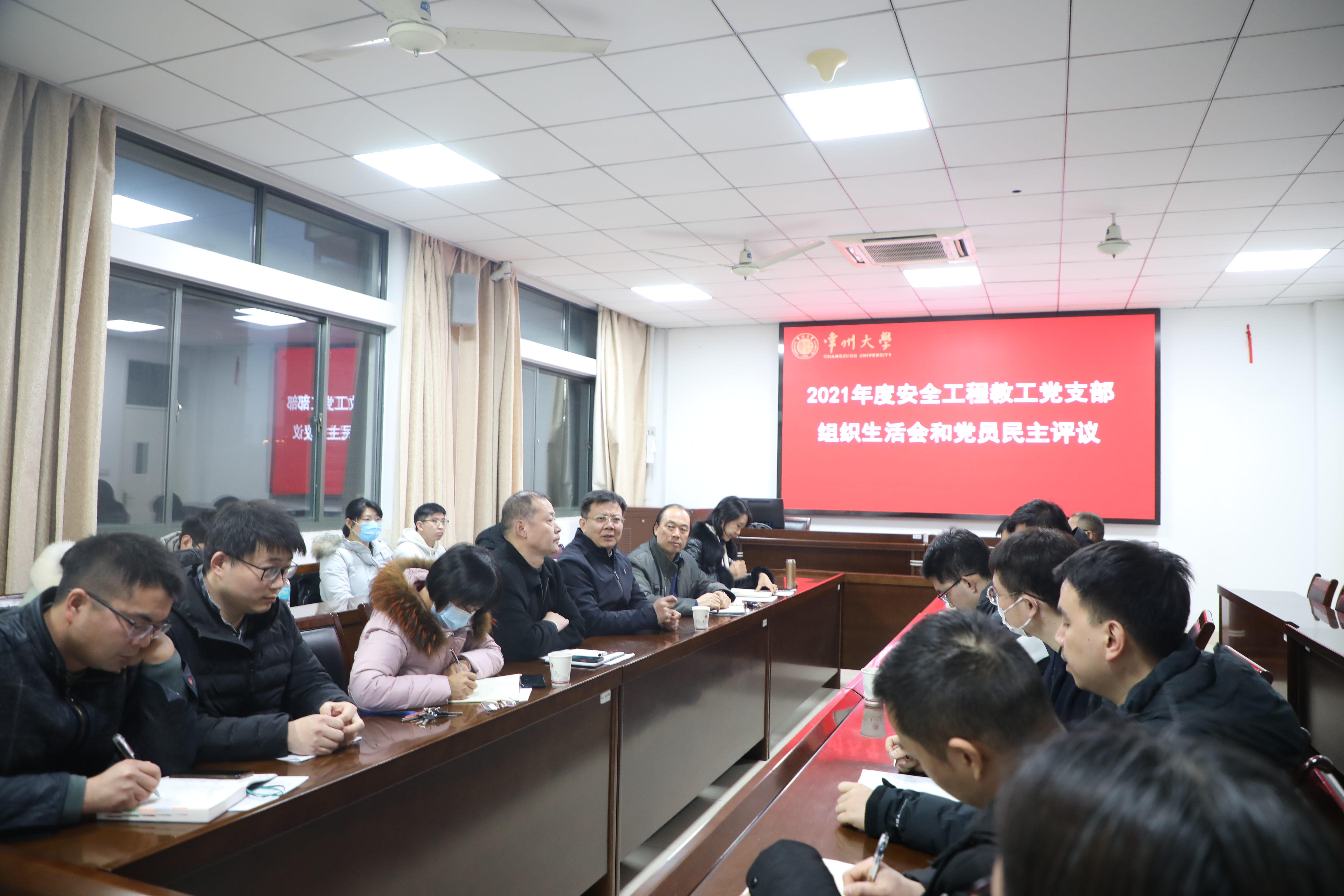 2022年1月7日下午,环境与安全工程学院安全工程教工支部在明行楼341会议室召开2021年度组织生活会和党员民主评议。支部全体党员参加会议,会议由支部书记郝永梅主持,校党副委书记、校长蒋军成与环境学院党委书记薛荣以普通党员身份参加。