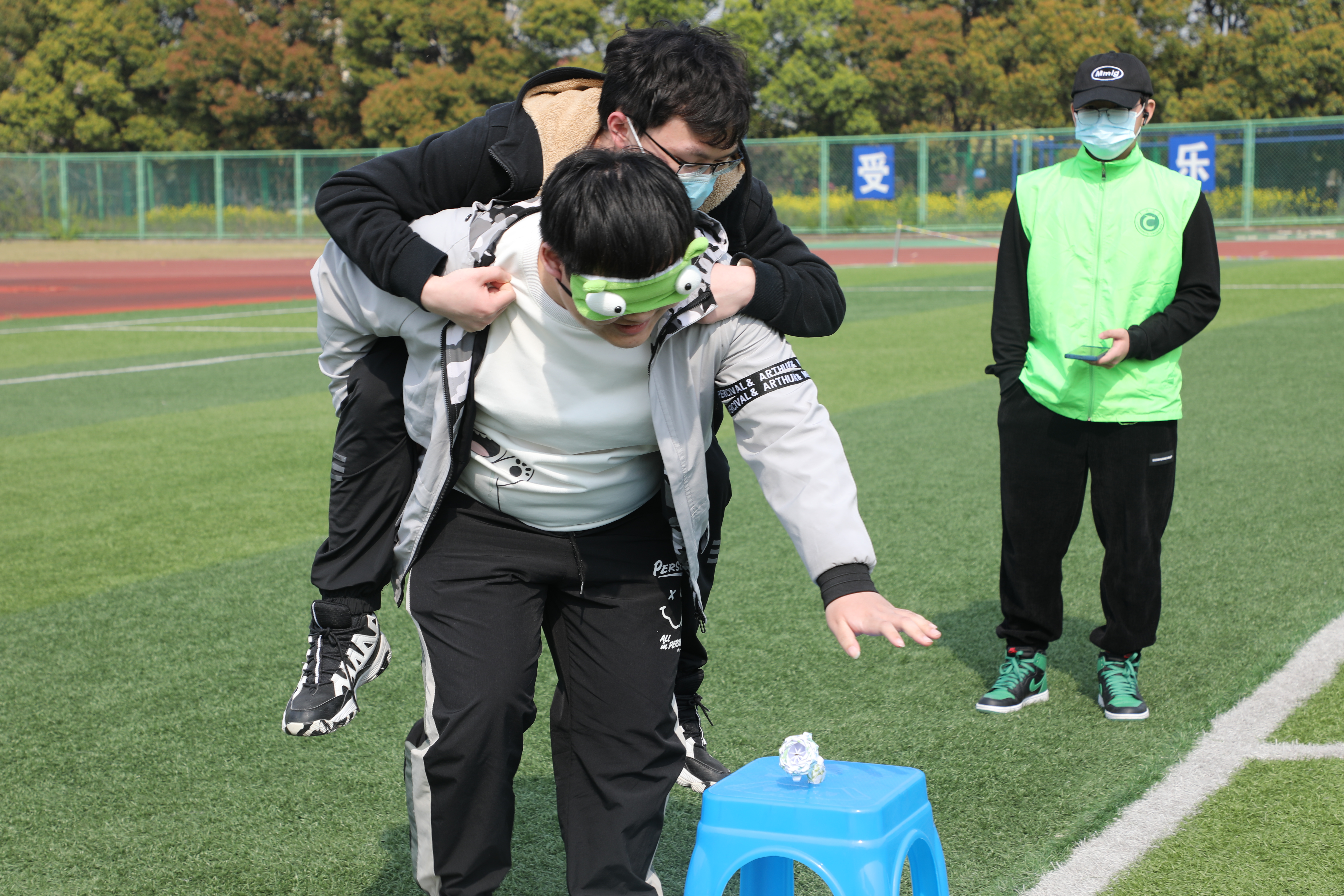 本次活动以班级为单位展开,设置了五人六足接力赛、乒乓越水杯、瞎子背瘸子等三个游戏,在“五人六足”的游戏中,同学们肩并肩协调合作,“1-2-1…”的口号清脆又坚定的回响在操场上。紧接着的“乒乓越水杯”游戏中,参赛同学奋力争先,班级的同学们热情观战,活动气氛热烈有序。在“瞎子背瘸子”游戏中,“瞎子”和“瘸子”的默契配合,绕过路障,拾得“花朵”。最后,在同学们的欢声笑语中,此次“春醒”活动落下了帷幕。